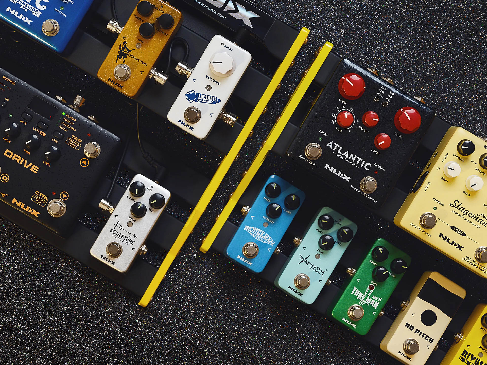NUX Bumblebee Pedalboard adalah solusi ideal untuk gitaris yang ingin menciptakan pedalboard sendiri untuk penampilan atau latihan. Dirancang dari pengalaman lebih dari 10 tahun dalam pembuatan pedal, Bumblebee menawarkan ruang optimal dengan desain double-stair untuk memudahkan penempatan dan akses ke semua pedal Anda.