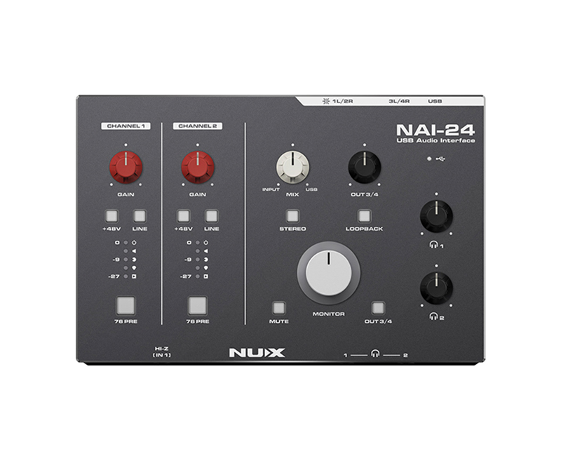 NUX NAI-24 adalah audio interface USB 2-in/4-out yang dirancang untuk personal studio, menampilkan preamp mikrofon Class A diskret, transformator audio berkualitas tinggi, dan kompresor analog berbasis FET type 76PRE. Dengan gain hingga 71 dB dan mode kompresi yang dapat dipilih untuk vokal, gitar, bass, dan live streaming, NAI-24 memastikan kualitas suara profesional untuk rekaman maupun siaran.